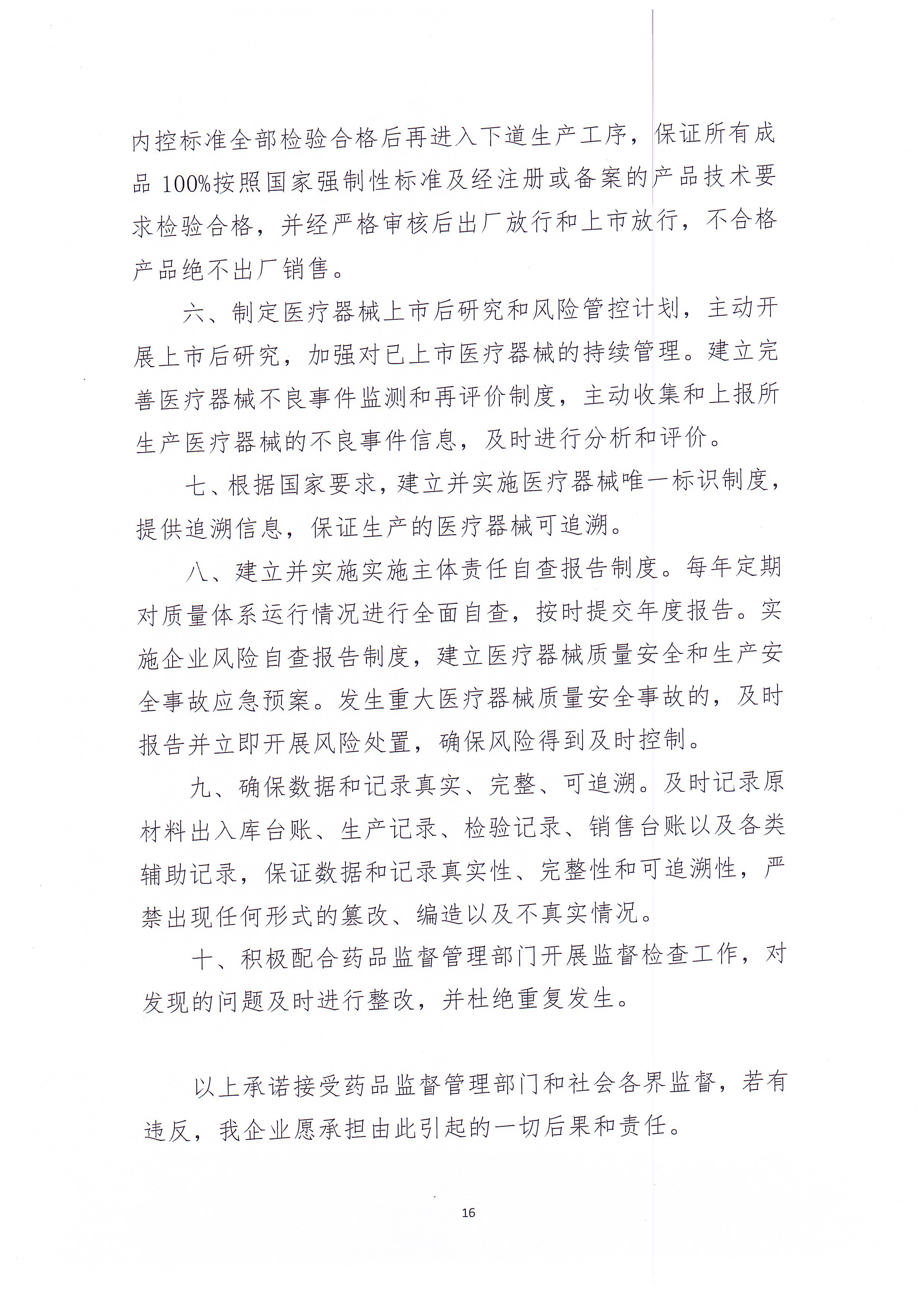 醫(yī)療器械質(zhì)量安全主體責(zé)任承諾書