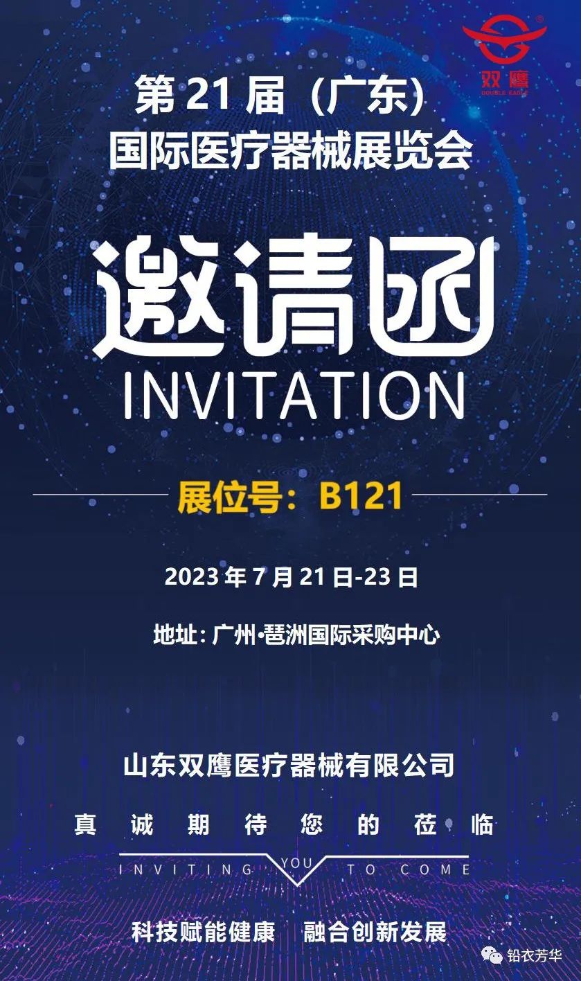 2023年7月21日-23日,第21屆(廣東)國際醫(yī)療器械展覽會在廣州·琶洲國際采購中心隆重舉行,雙鷹醫(yī)療在B121號展位恭候您的光臨!